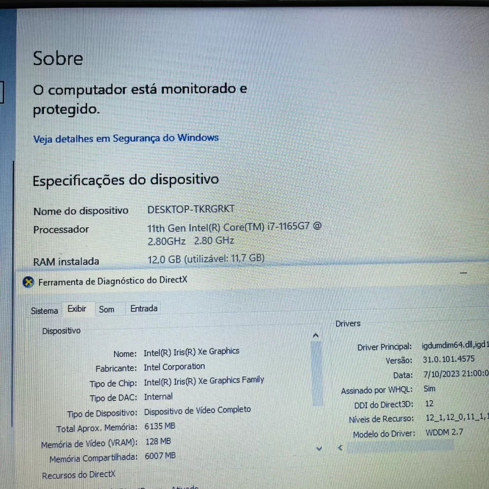 Notebook Dell i7 11th - 12Gb Ram - Intel Iris Xe - SSD