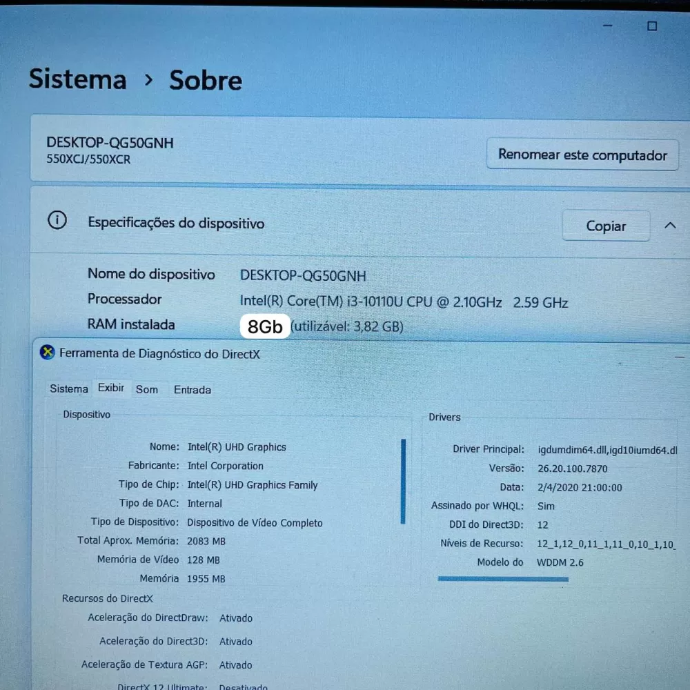 Notebook Samsung i3 10th - 8Gb Ram - SSD e HD