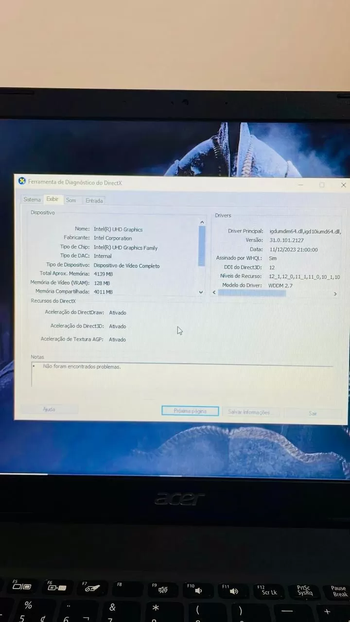 Notebook Acer i5 10th - 8Gb Ram - SSD e 1TB de HD