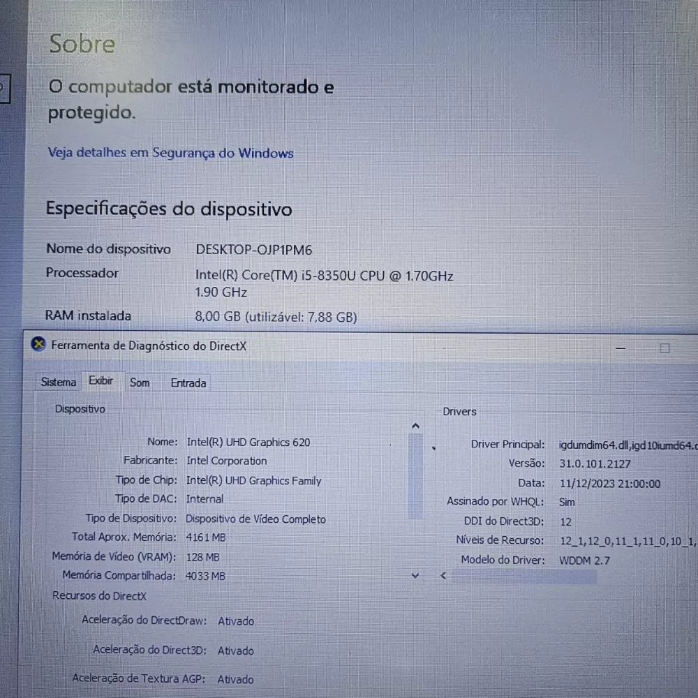Placa de Vídeo: Gráficos UHD Intel® 620