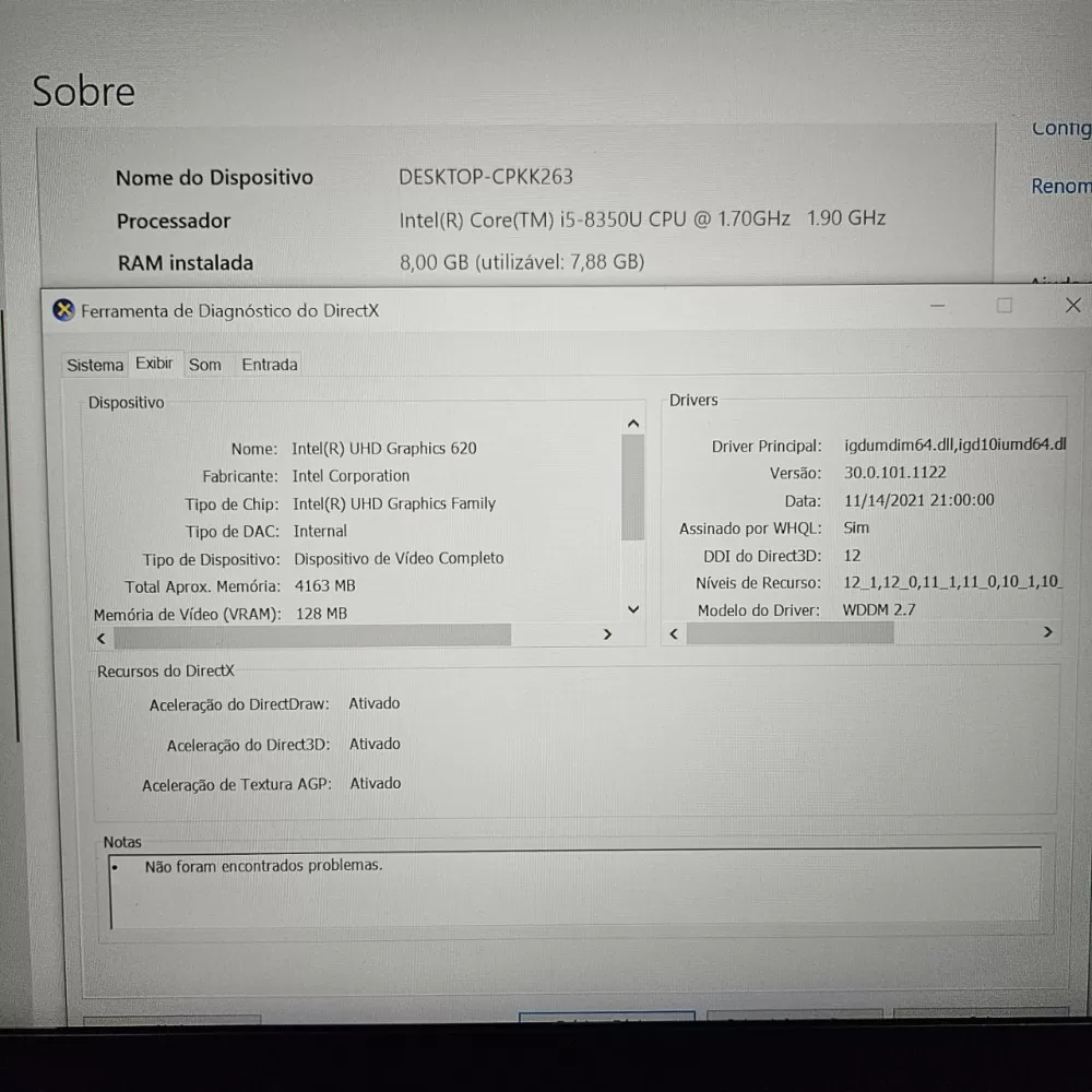 Intel Core i5 8350U (4 núcleos, até 3.60 GHz com Turbo Boost)