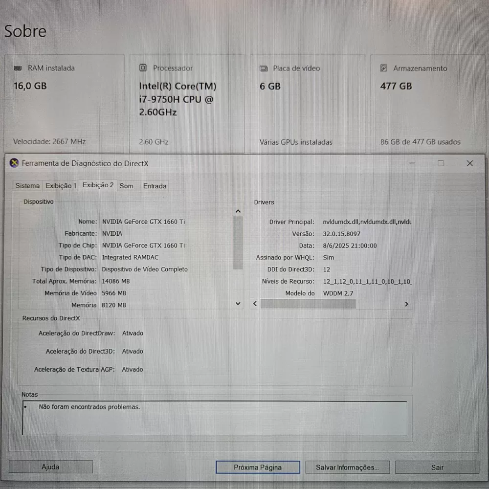 Notebook Avell i7 9th - 16Gb Ram - GTX 1660Ti (6Gb) - 512Gb SSD - Bateria Nova!