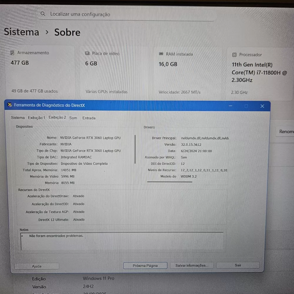 Notebook Dell G15 i7 11th - 16Gb Ram - RTX 3060 (6Gb) - 512Gb SSD