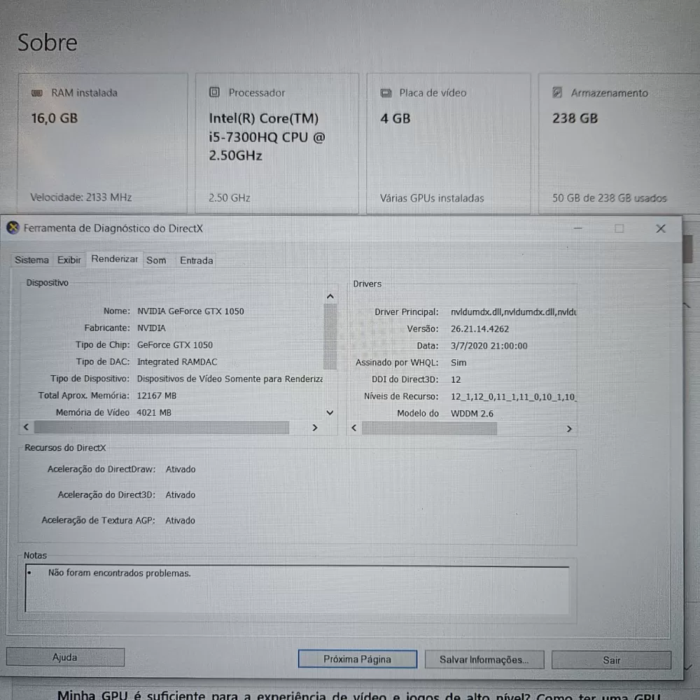 Intel Core i5-7300HQ, com 4 núcleo e 4 threads 2,50 GHz