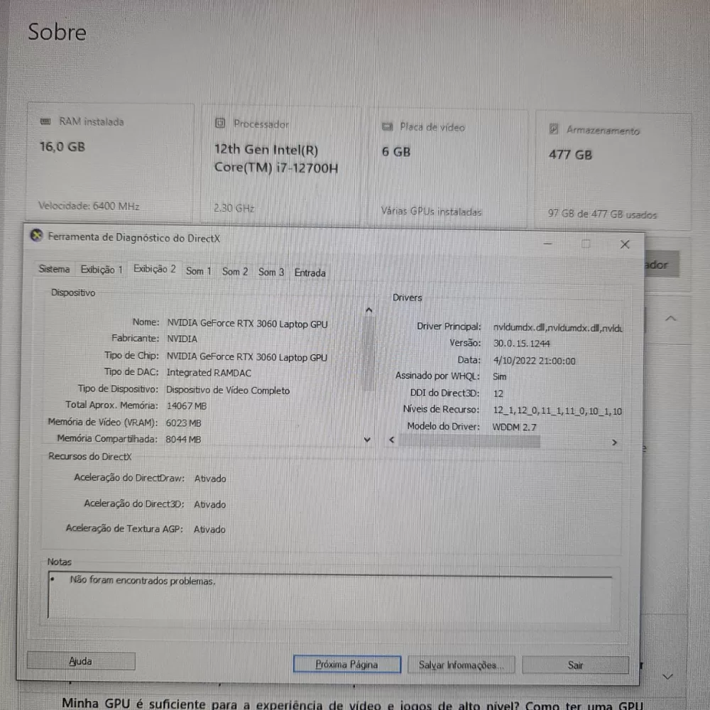 Notebook Acer Predator i7 12th - 16Gb Ram - RTX 3060 (6Gb) - 512Gb SSD