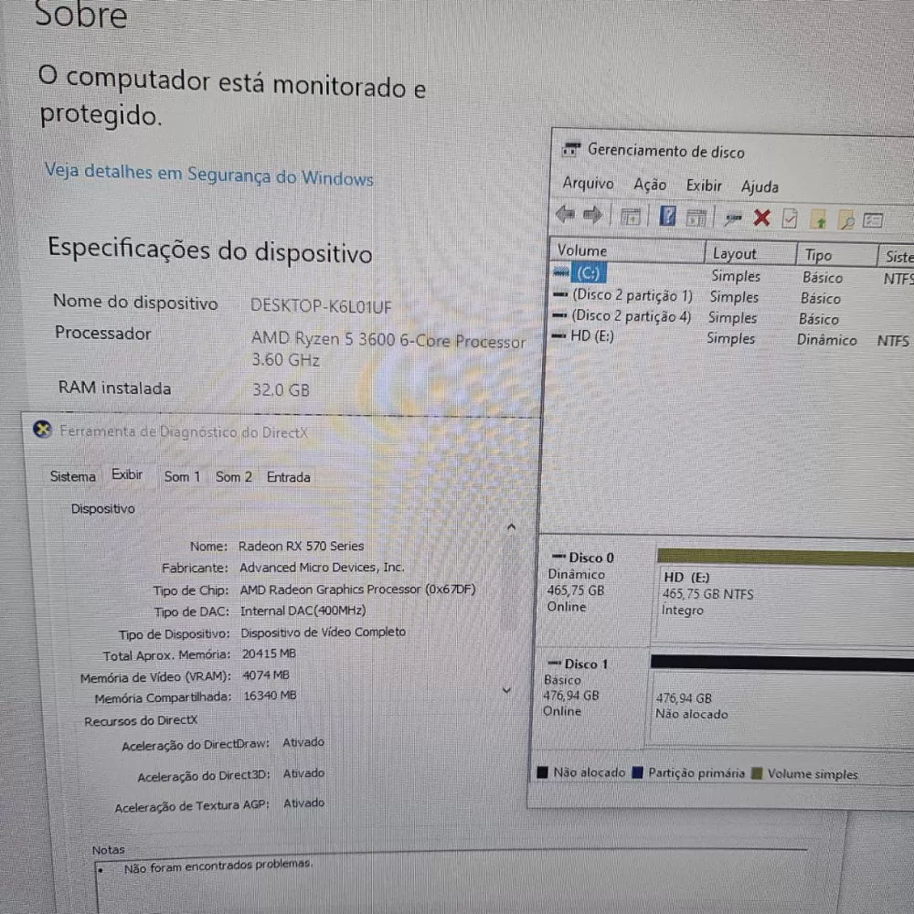 Pc Gamer Ryzen 5 3600 - 32Gb Ram - RX570 - 512Gb SSD e 512Gb HD