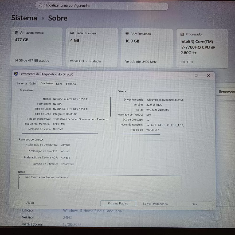 dedicada NVIDIA GeForce GTX 1050Ti com 4 GB gDDR5