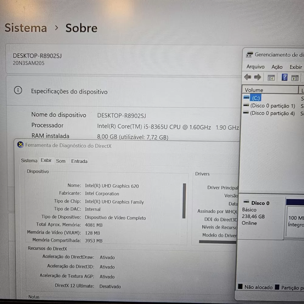 Processador Intel Core i5-8365U, 4 núcleos