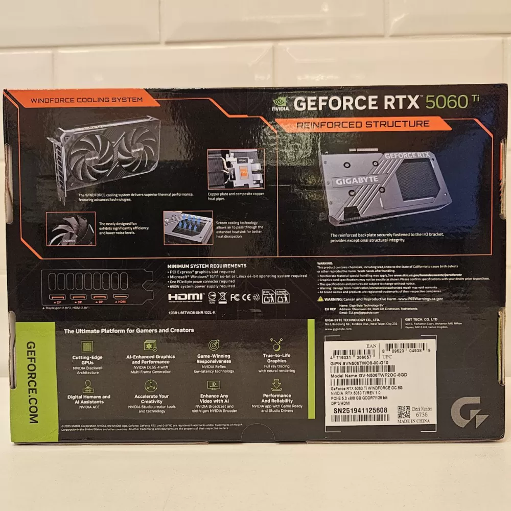 - Placa de Vídeo RTX 5060 Ti WINDFORCE 8G Gigabyte NVIDIA