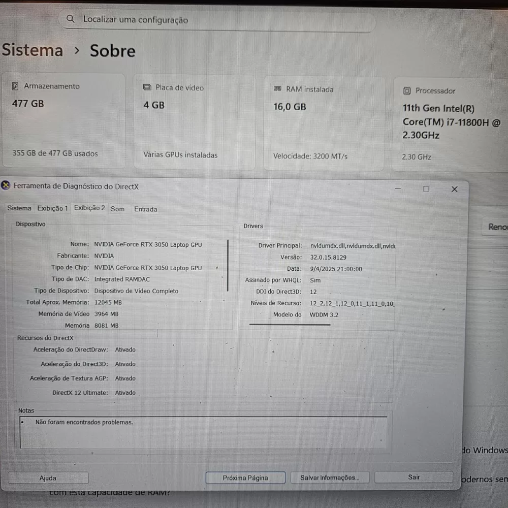 Notebook Acer Nitro 5 i7 11th - 16Gb Ram - RTX 3050 - 512Gb SSD