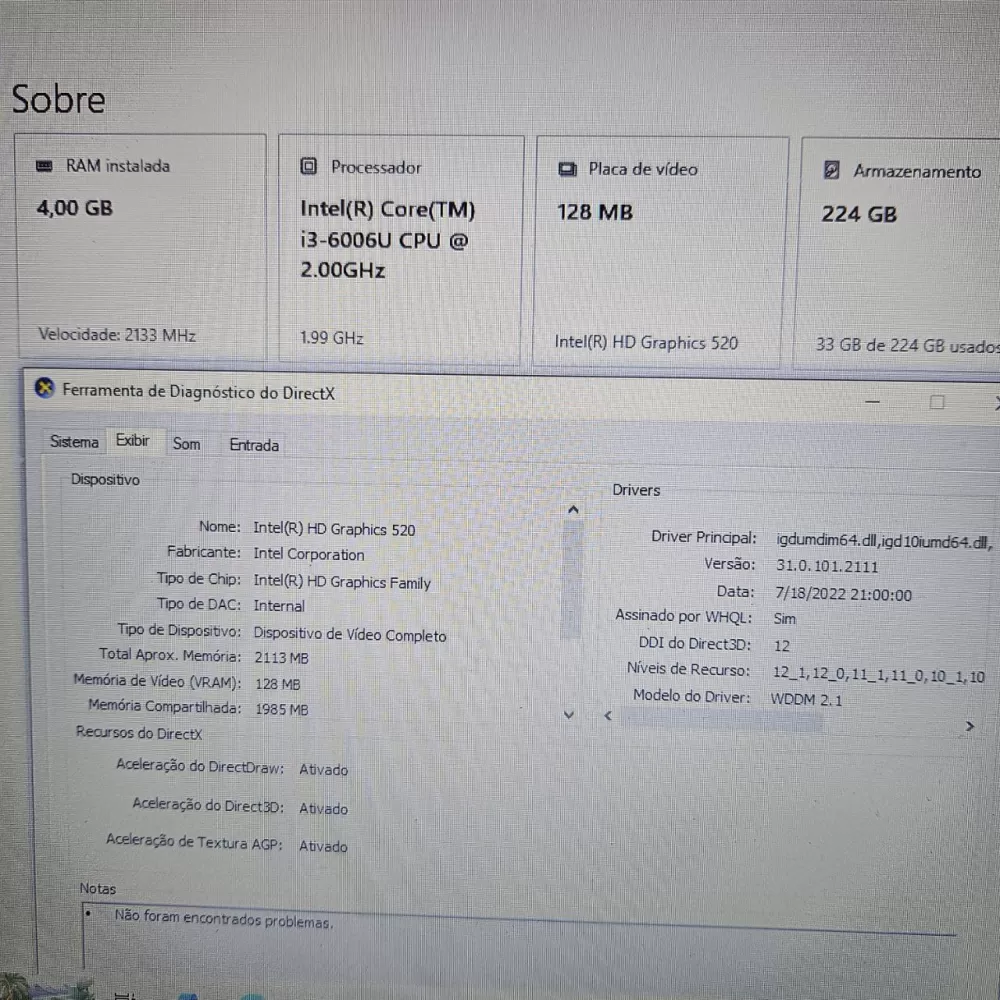 Notebook Lenovo i3 6th - 4Gb Ram - SSD