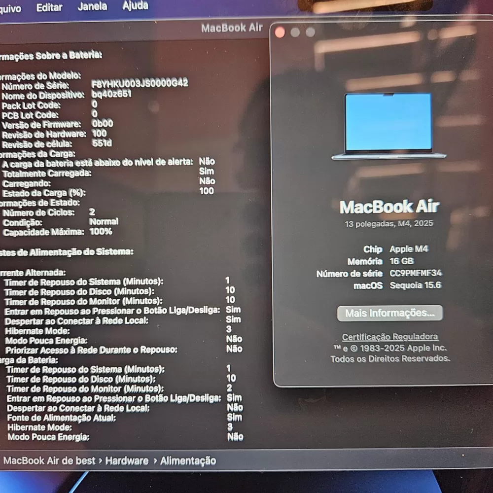 MacBook Air M4 - 16Gb Ram - SSD - A3440 - Garantia Apple 9/26