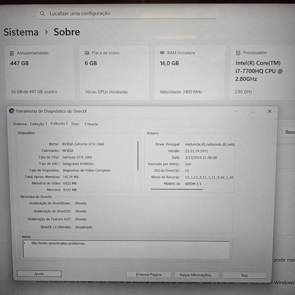 Dedicada Nvidia GeForce GTX 1060 com 6GB gDDR5