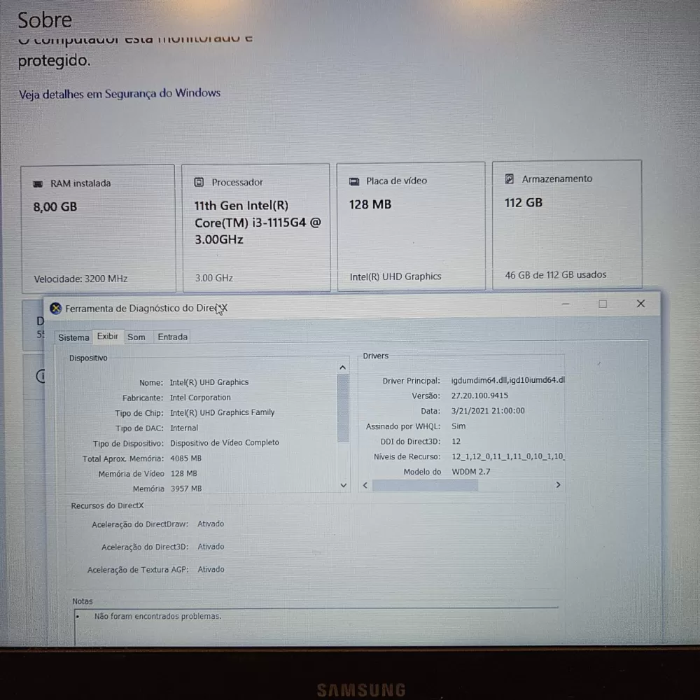 Notebook Samsung i3 11th - 8Gb Ram - SSD