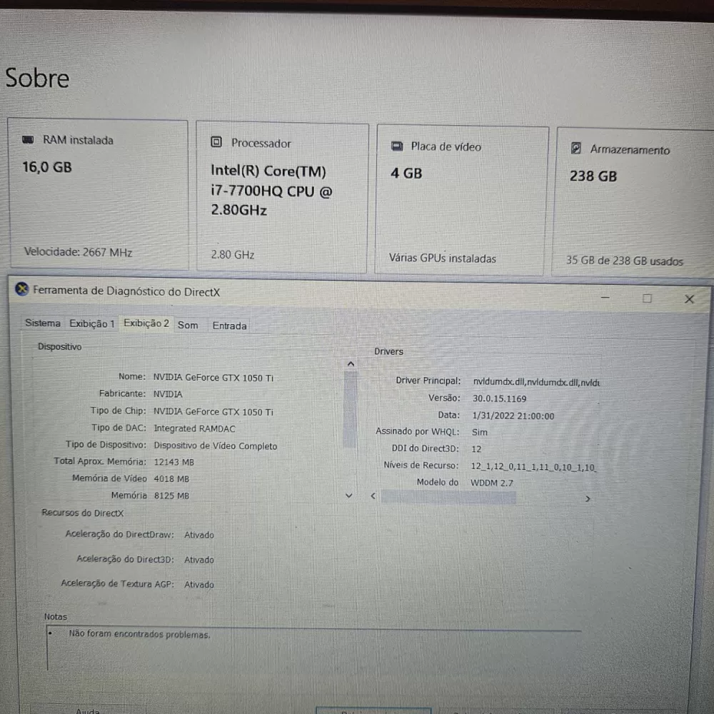 Notebook Dell Gaming i7 7th - 16Gb Ram - 1050 Ti - SSD