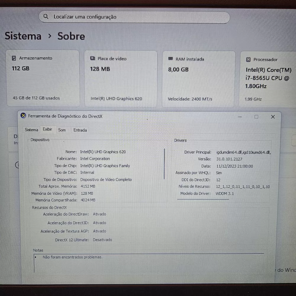 Notebook Dell i7 8th - 8Gb Ram - SSD