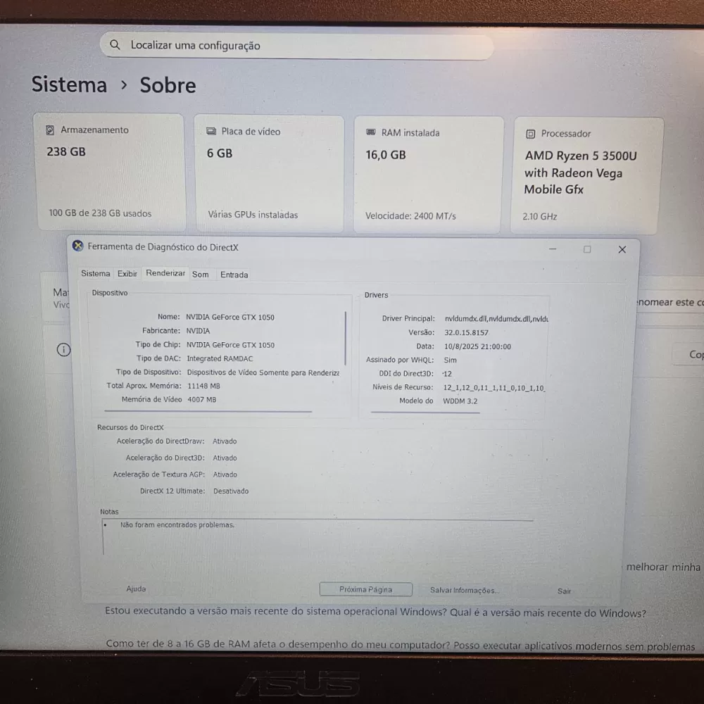 Notebook Asus Gamer Ryzen 5 3500U - 16Gb Ram - GTX 1050 - SSD
