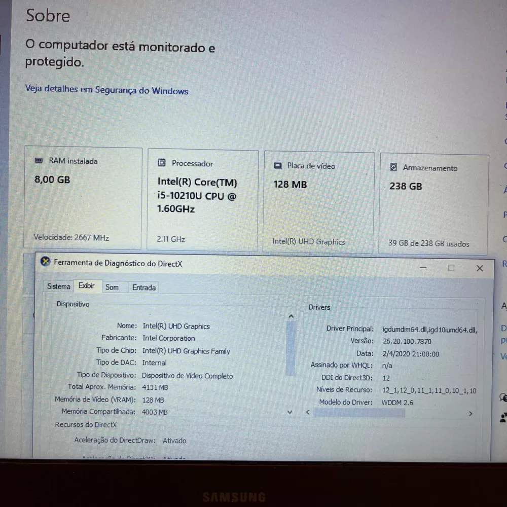 Notebook Samsung i5 10th - 8Gb Ram - SSD