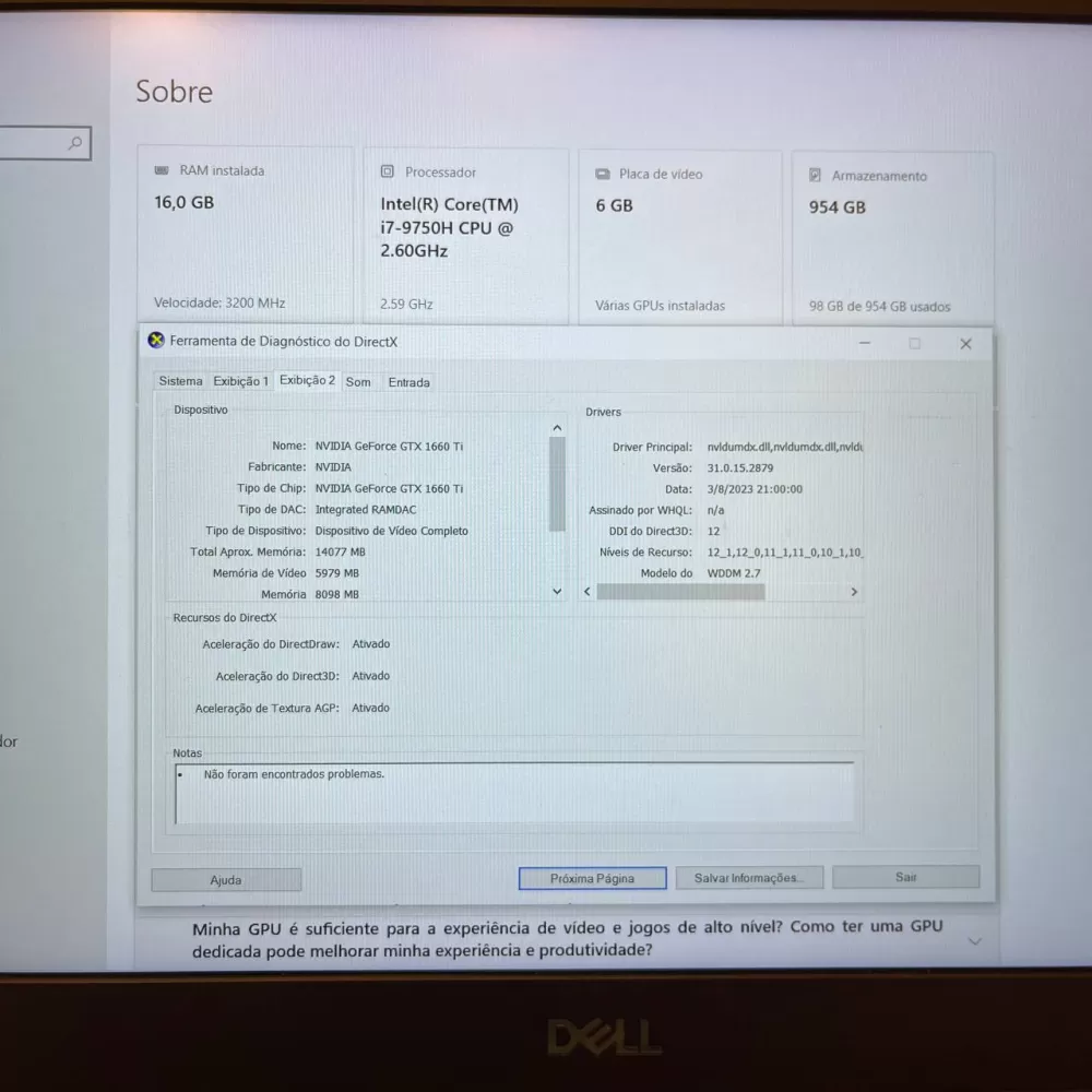 Notebook Dell G5 i7 9th - 16Gb Ram - GTX 1660 Ti ( 6Gb) - 1Tb SSD