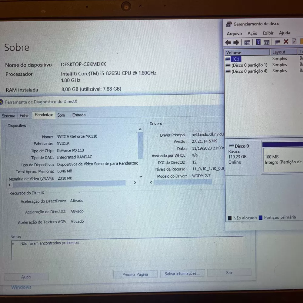 Notebook Lenovo i5 8th - 8Gb Ram - GeForce MX110 - SSD