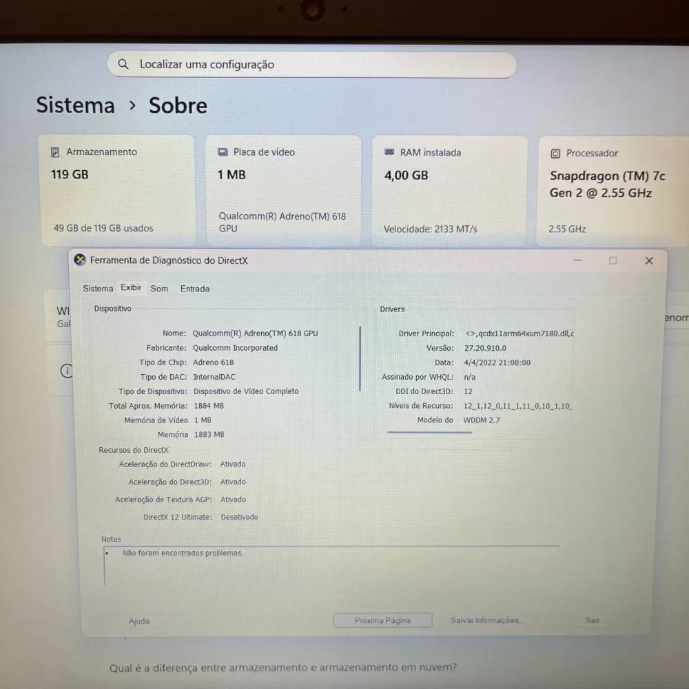 Notebook Samsung Snapdragon 7c Gen 2 - 4Gb Ram - SSD