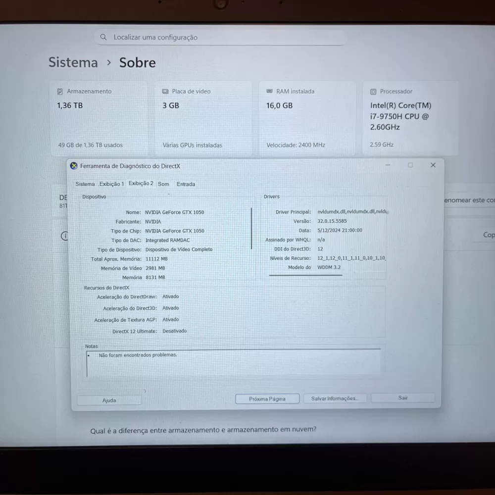 Notebook Lenovo Gaming i7 9th - 16Gb Ram - GTX 1050 - 512Gb SSD e 1Tb HD