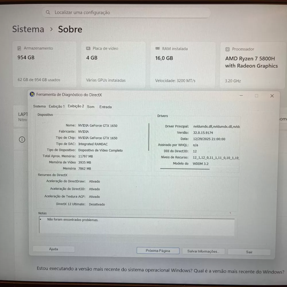 Notebook Acer Nitro 5 Ryzen 7 5800H - 16Gb Ram - GTX 1650 - 1Tb SSD