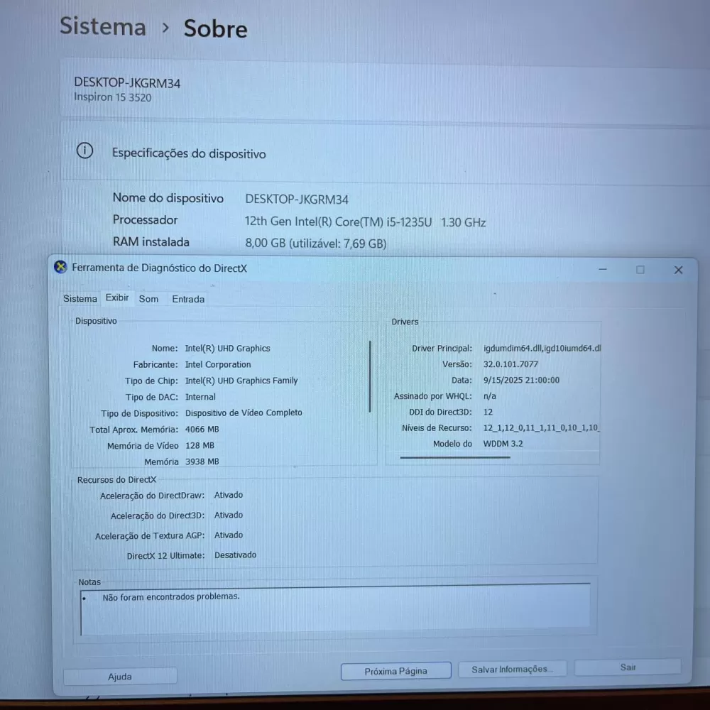 Notebook Dell i5 12th - 8Gb Ram - Inetl Iris Xe - 512Gb SSD