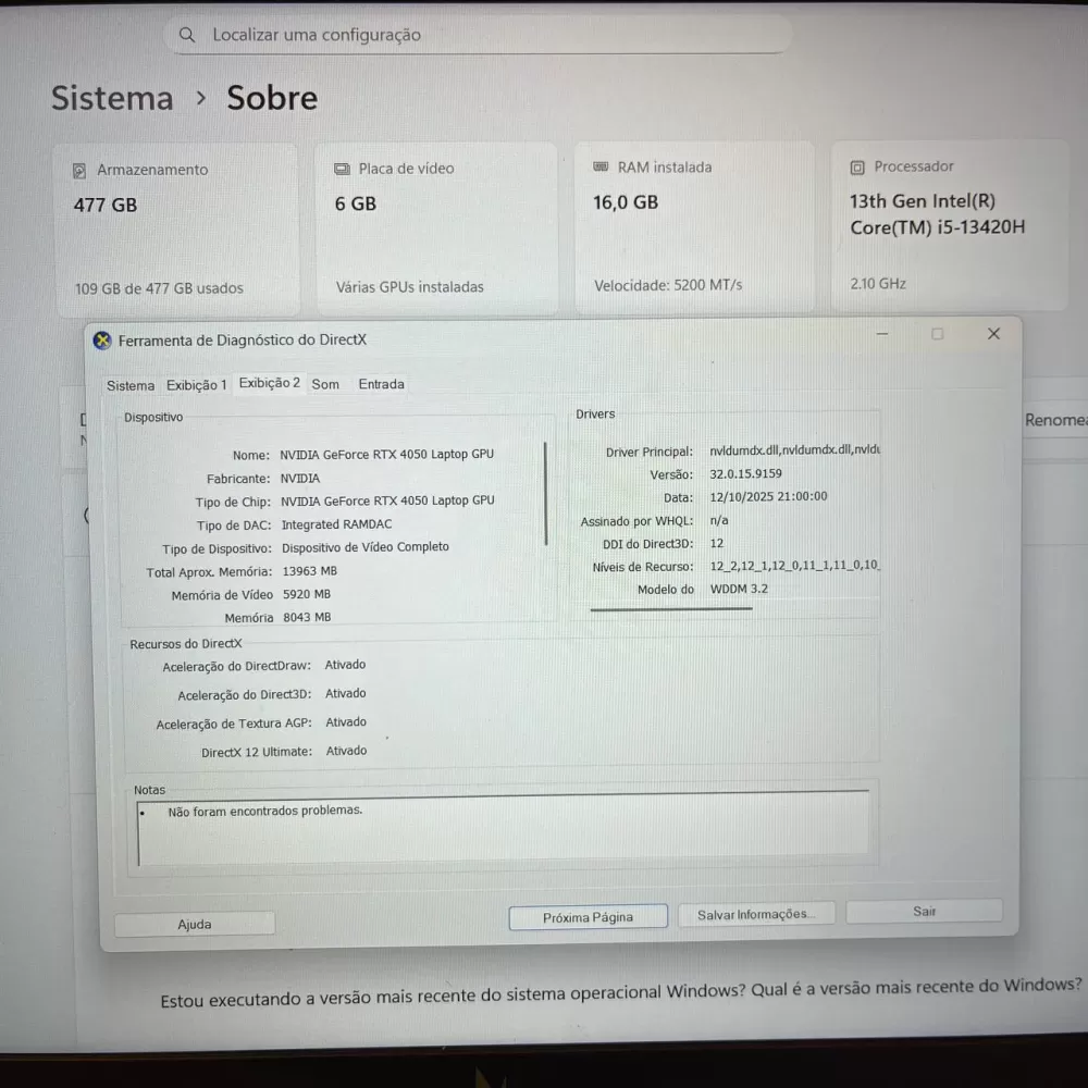 Intel Core i5-13420H 8 núcleos / 12 threads 12 MB de cache de 1.50 GHz até 4.60 GHz