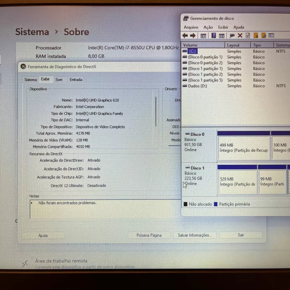 Notebook Lenovo i7 8th - 8Gb Ram - SSD e 1Tb HD