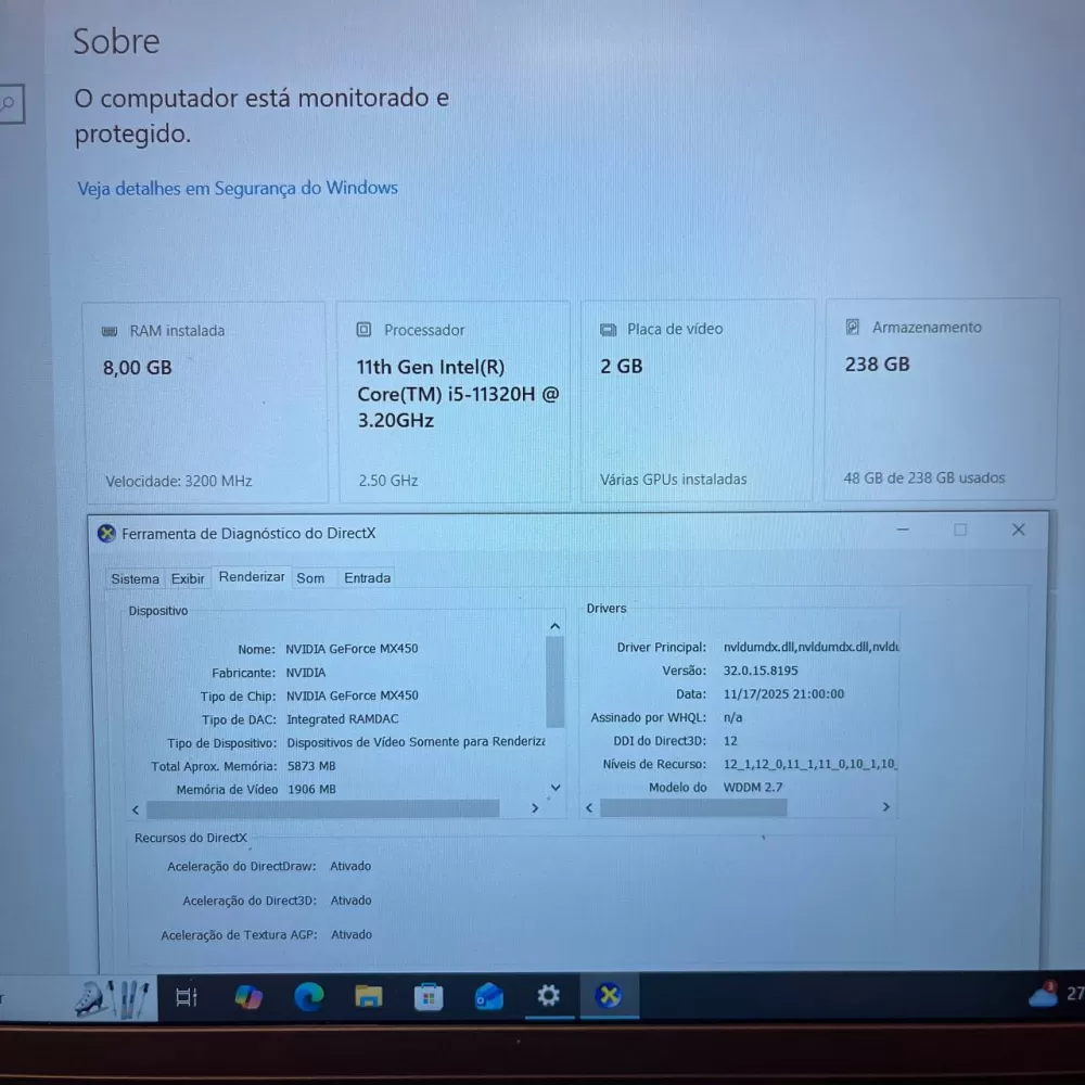 Notebook Dell i5 11th - 8Gb Ram - GeForce MX450 - SSD