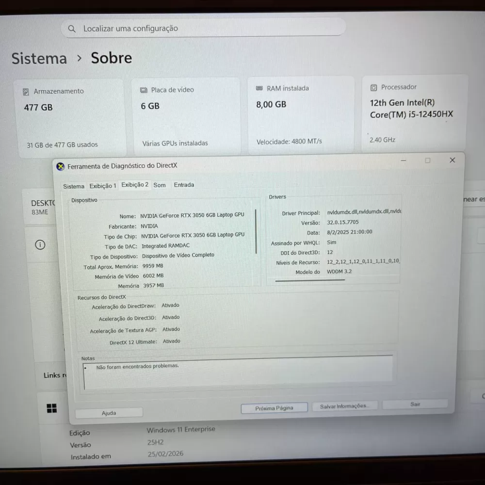 Notebook Lenovo LOQ i5 12th - 8Gb Ram - RTX 3050 (6Gb) - 512Gb SSD