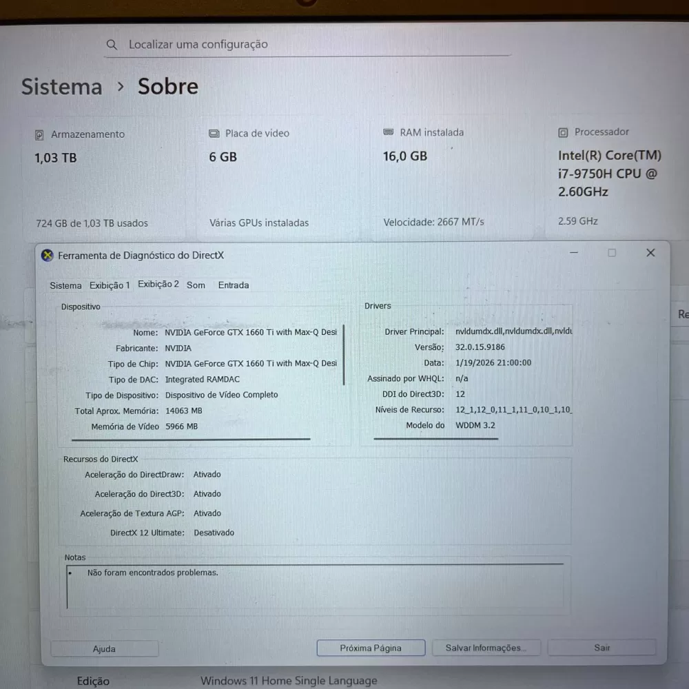 Notebook Dell G3 i7 9th - 16Gb Ram - GTX 1660 Ti - SSD e 1Tb HD