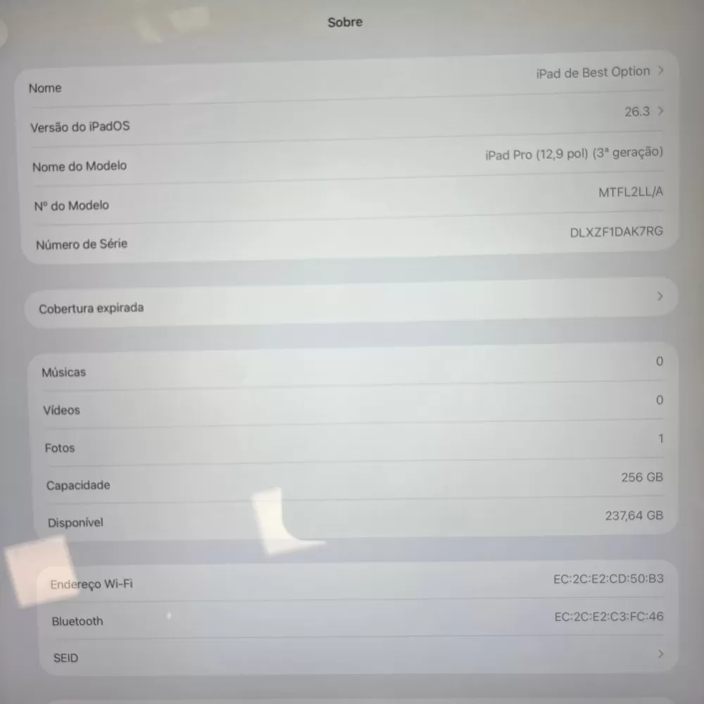 iPad Pro 12.9 Pol - 3th - 256Gb - Wi-Fi