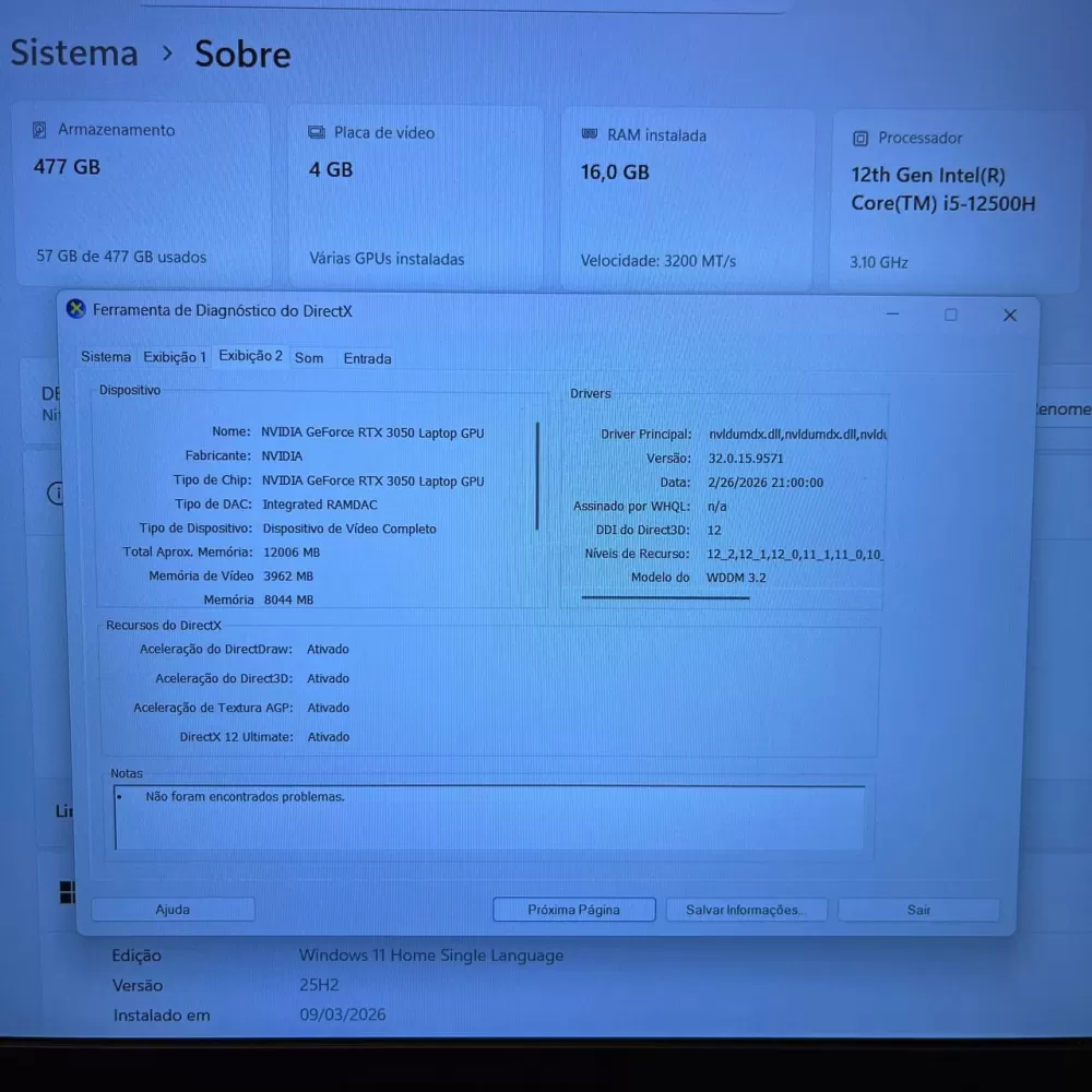 Notebook Acer Nitro 5 i5 12th - 16Gb Ram - RTX 3050 - 512Gb SSD