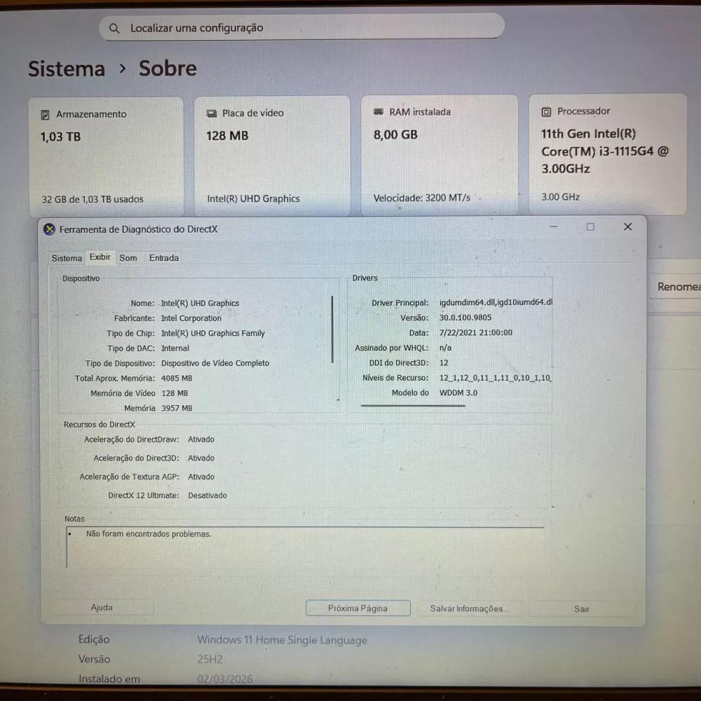 Notebook Samsung i3 11th - 8Gb Ram - SSD e 1Tb HD