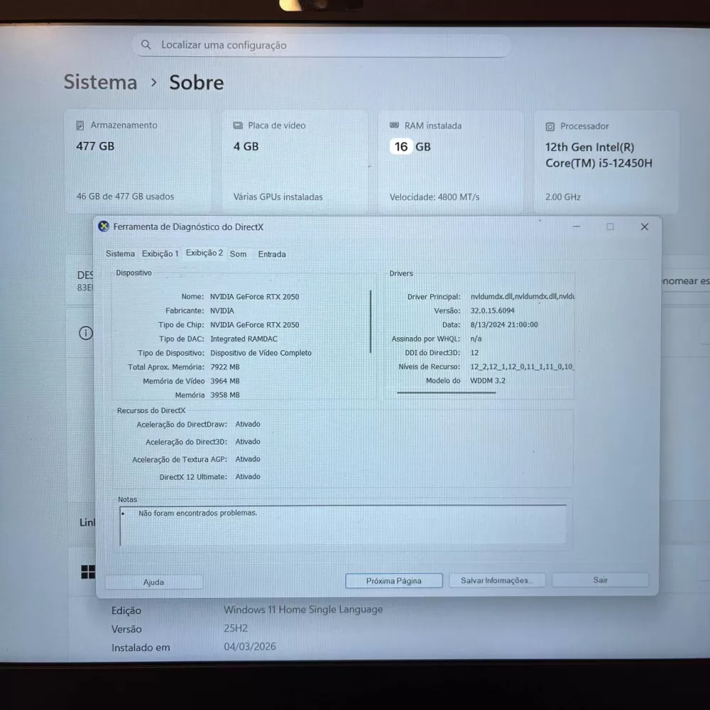 Notebook Lenovo LOQ i5 12th - 16Gb Ram - RTX 2050 - 512Gb SSD