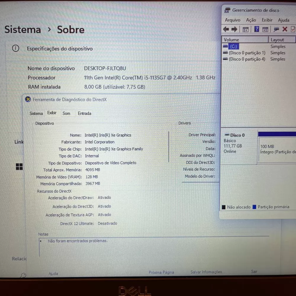 Notebook Dell i5 11th - 8Gb Ram - Intel Iris Xe - SSD