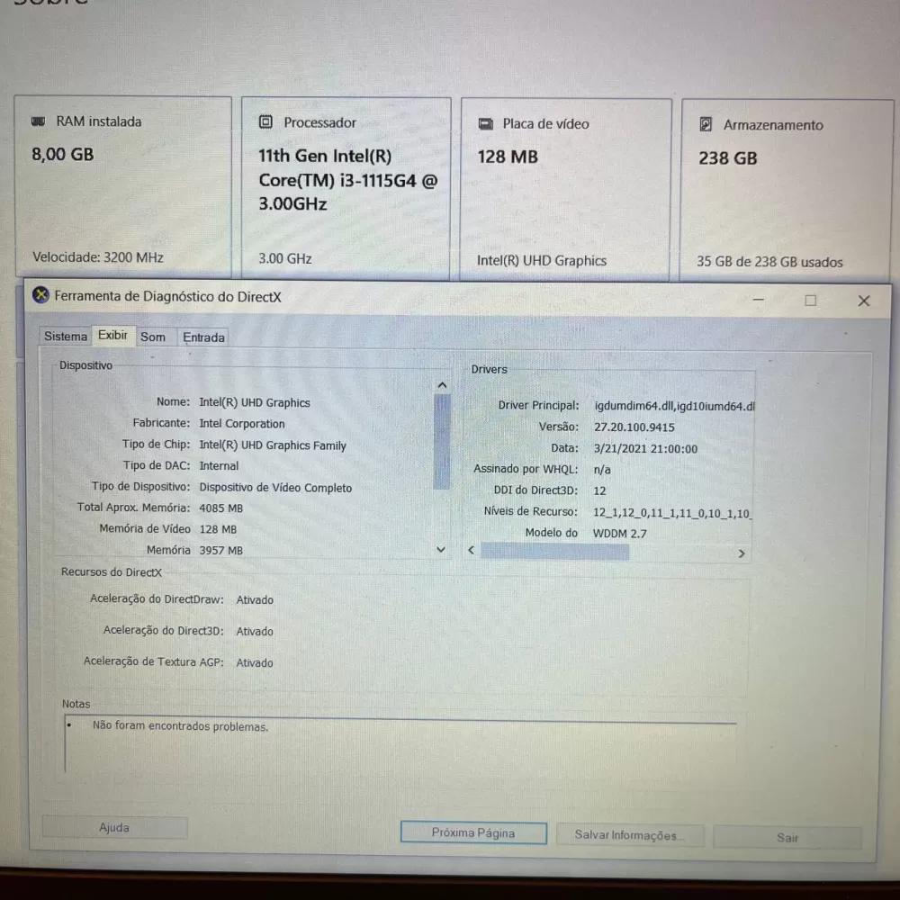 Intel Core i3-1115G4 2 núcleos / 4 threads de 3.00 GHz até 4.10 GHz