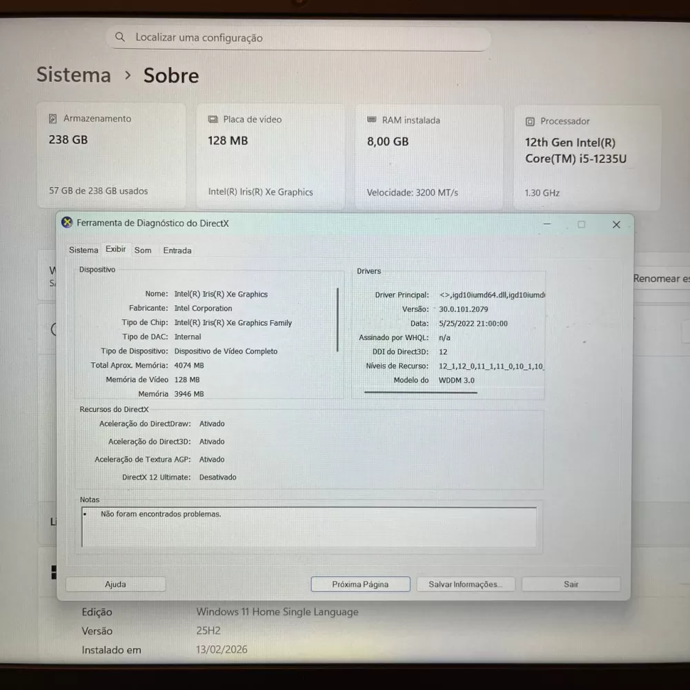 Notebook Samsung i5 12th - 8Gb Ram - Intel Iris Xe - SSD