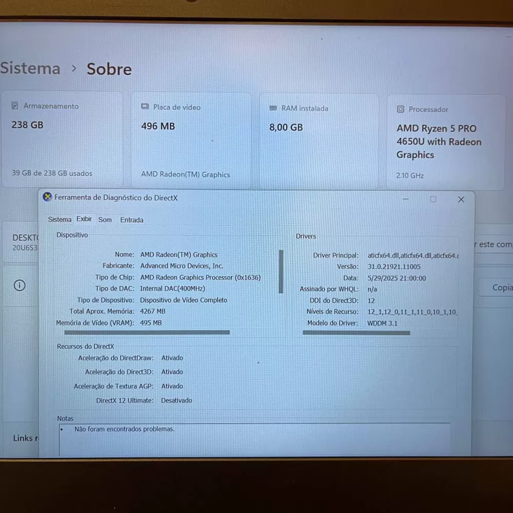 Notebook Lenovo ThinkPad Ryzen 5 PRO 4650U - 8Gb Ram - SSD