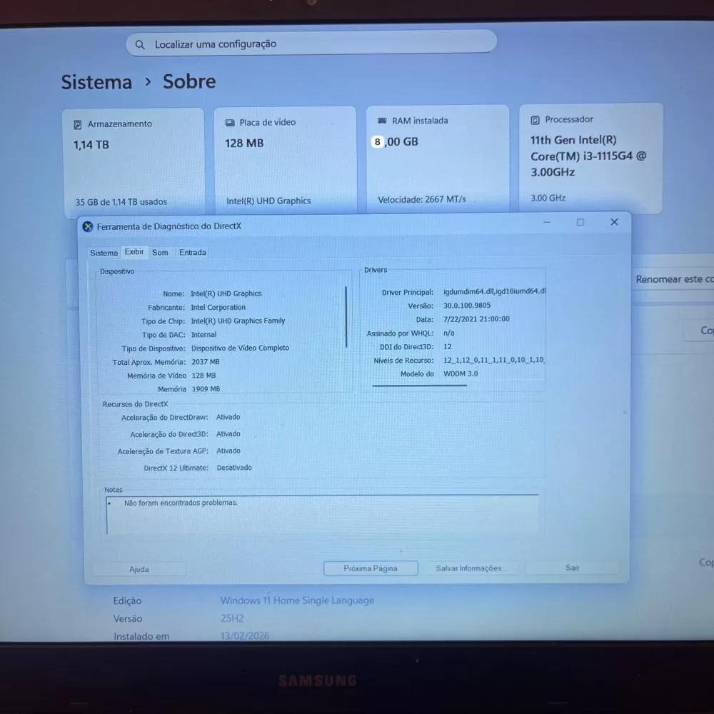 Notebook Samsung i3 11th - 8Gb Ram - SSD e 1Tb HD