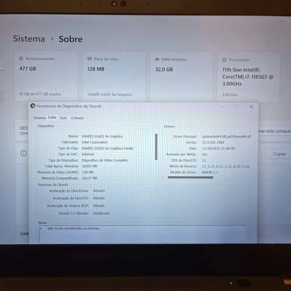 Notebook Lenovo ThinkPad i7 11th - 32Gb Ram - Intel Iris Xe - 512Gb SSD - Touch