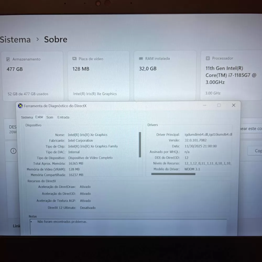 Notebook Lenovo ThinkPad i7 11th - 32Gb Ram - Intel Iris Xe - 512Gb SSD - Touch