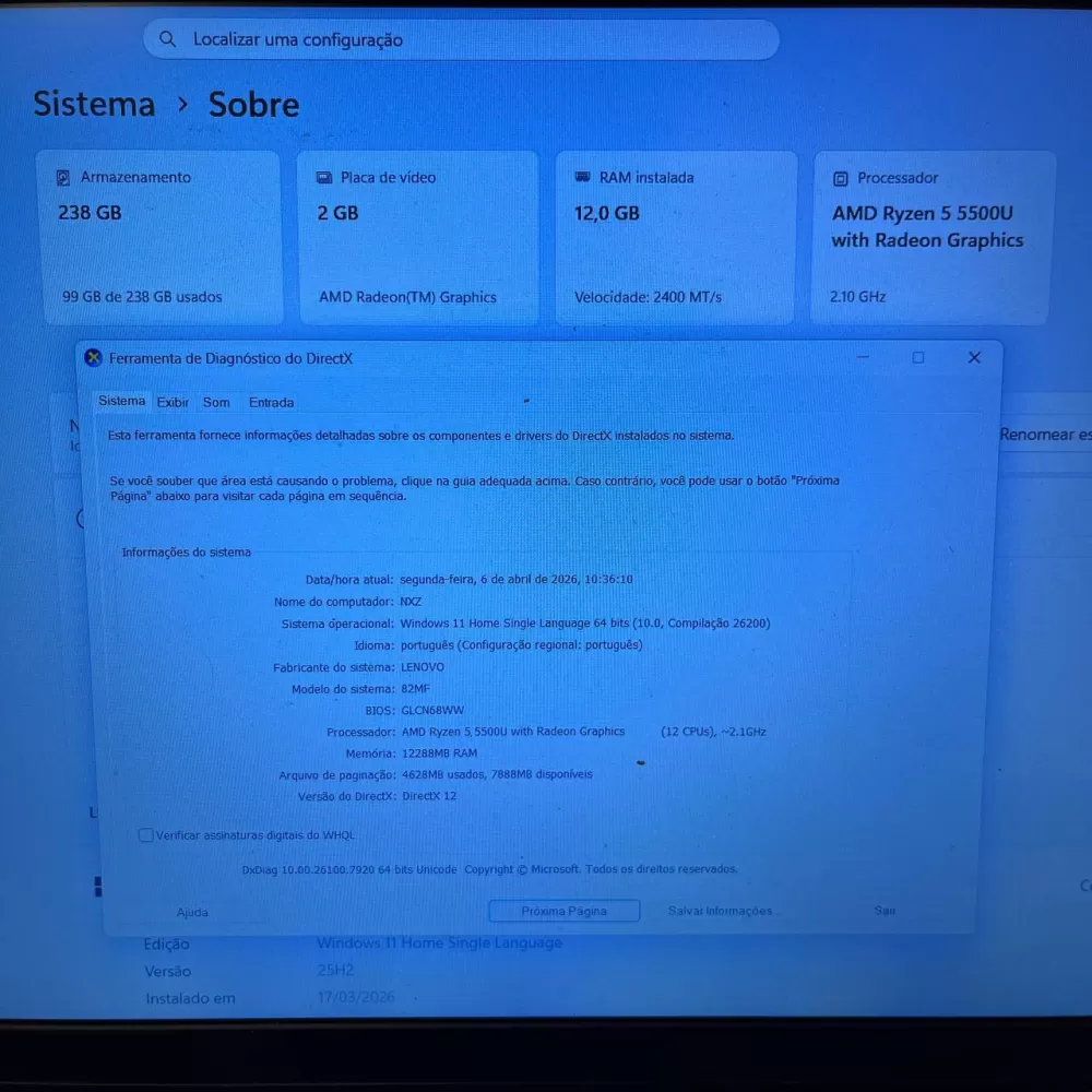 Notebook Lenovo Ryzen 5 5500U - 12Gb Ram - RX Vega 7 - SSD