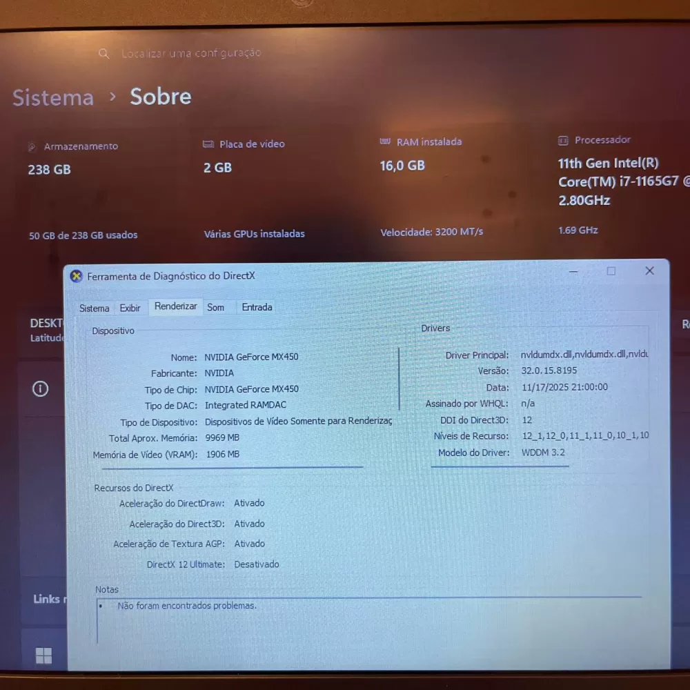 Notebook Dell i7 11th - 16Gb Ram - GeForce MX450 - 256Gb SSD