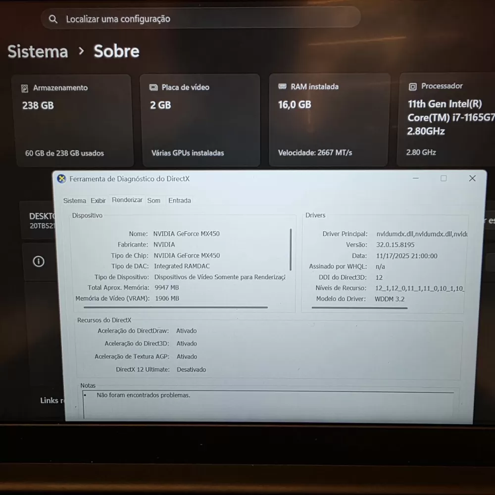Notebook Lenovo ThinkPad i7 11th - 16Gb Ram - GeForce MX450 - SSD