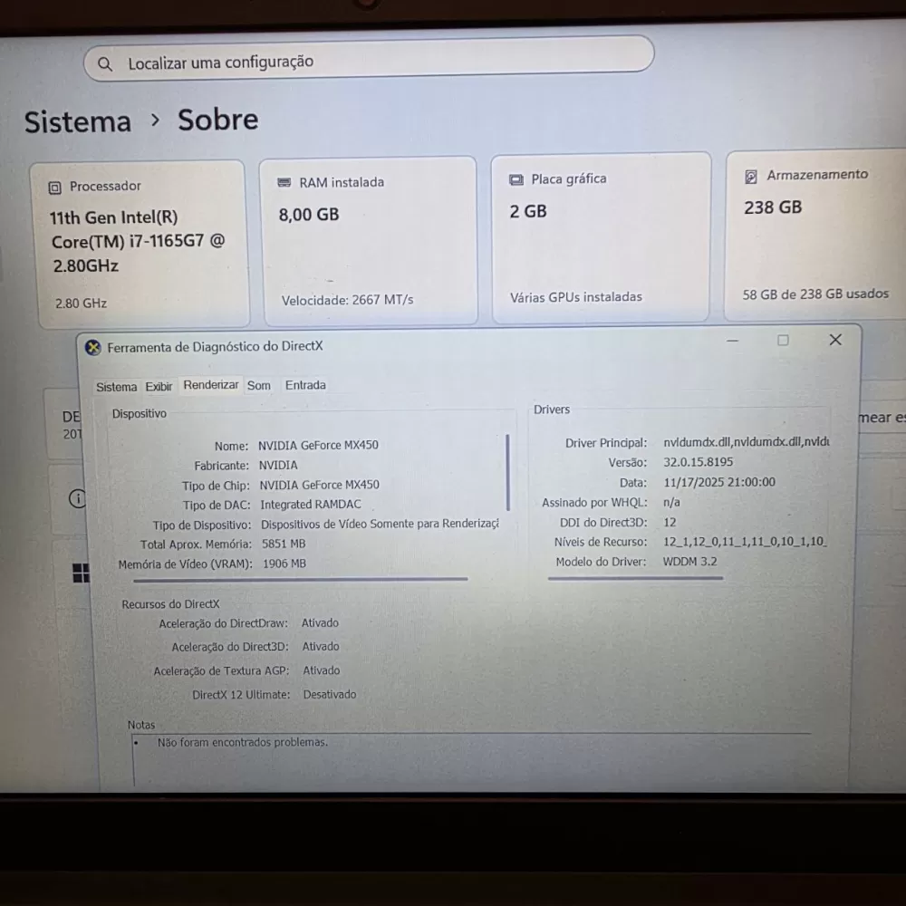 Notebook Lenovo ThinkPad i7 11th - 8Gb Ram - GeForce MX450 - SSD