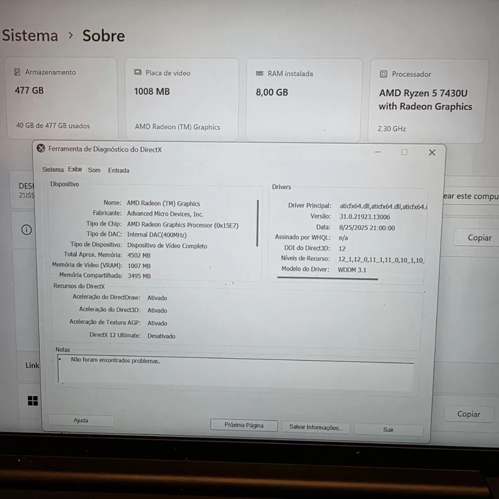 Notebook Lenovo ThinkPad Ryzen 5 7430U - 8Gb Ram - RX Vega 7 - 512Gb SSD