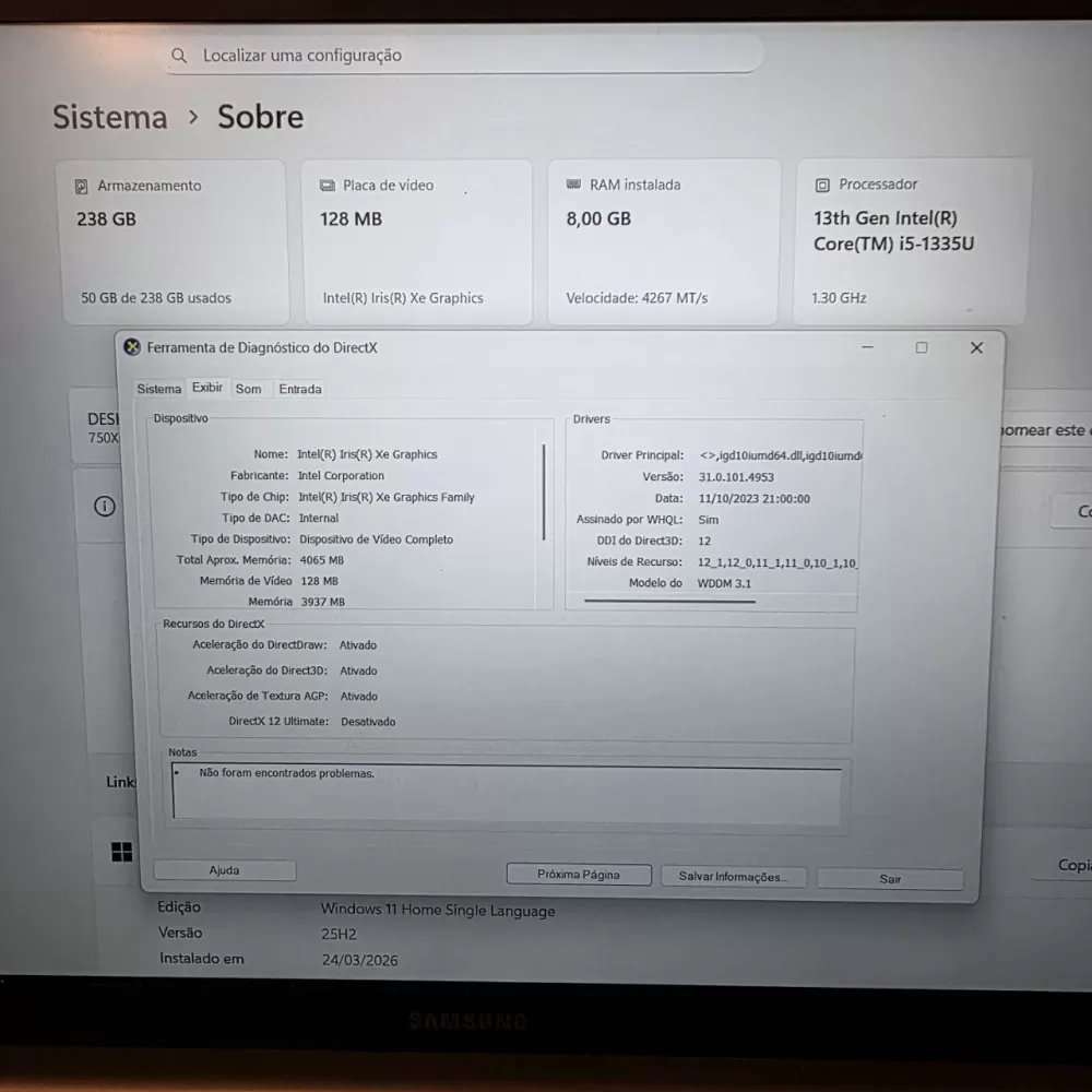 Notebook Samsung GalaxyBook4 i5 13th - 8Gb Ram - Intel Iris Xe - SSD